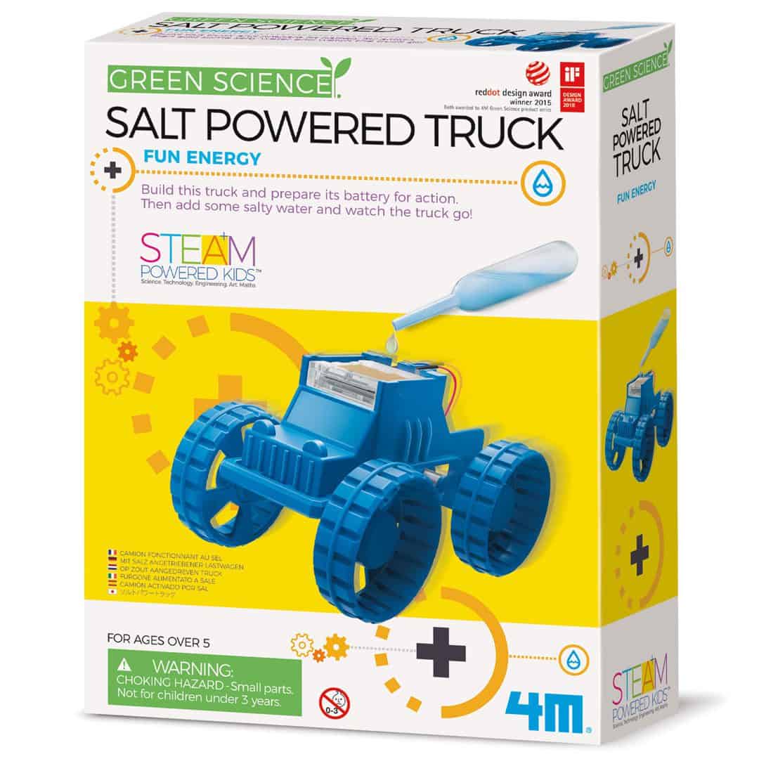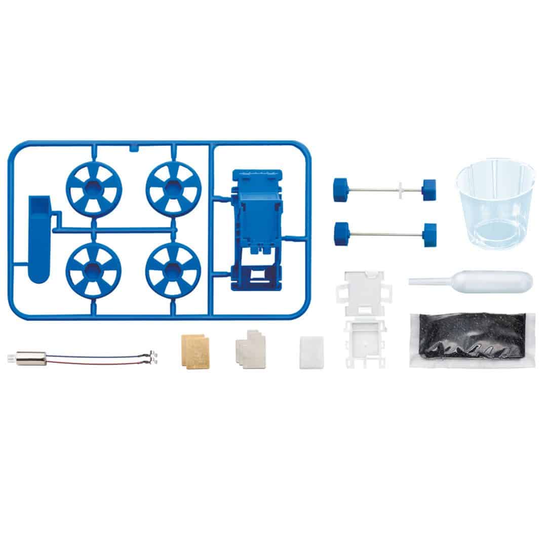 תכולה: 1x גוף משאית, 1x ציר פשוט, 1x ציר עם הילוכים, 1x את דחפור, 4x גלגל, 2x מחסנית סוללה, 1x אדק, 1x מנוע, 1x כוס, 1x שקית פחמן פעיל, 4 x גיליון בד, 2x גליון נחושת, 4x גליון מגנזיום. מוצרים דרושים אך אינם כלולים בערכה זו: מלח שולחן וכפית. אורכו של הג’יפ לאחר הרכבה הוא 10 ס”מ.