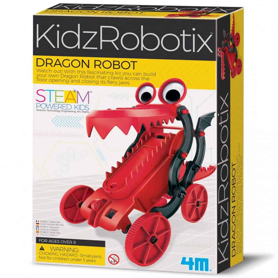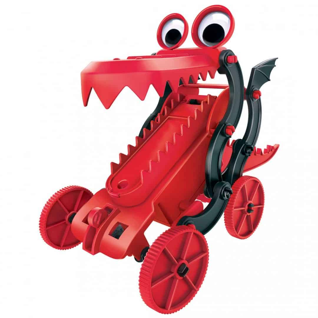 היזהרו! רובוט דרקון מהלך חופשי! בעזרת ערכה מרתקת זו תוכלו לבנות רובוט דרקון משלכם הזוחל על פני הרצפה בעודו פותח וסוגר את לסתותיו הלוהטות.