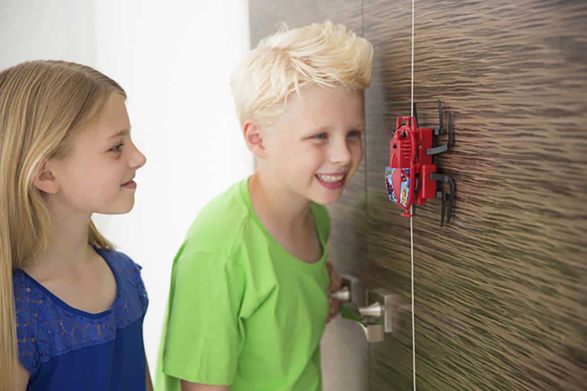 רובוט עכביש מתרוצץ מעלה ומטה על קוריו, כמו עכביש אמיתי על חוט משי. מפחיד! הוא משנה את כיוון התקדמותו בחוכמה בחלק העליון והתחתון.