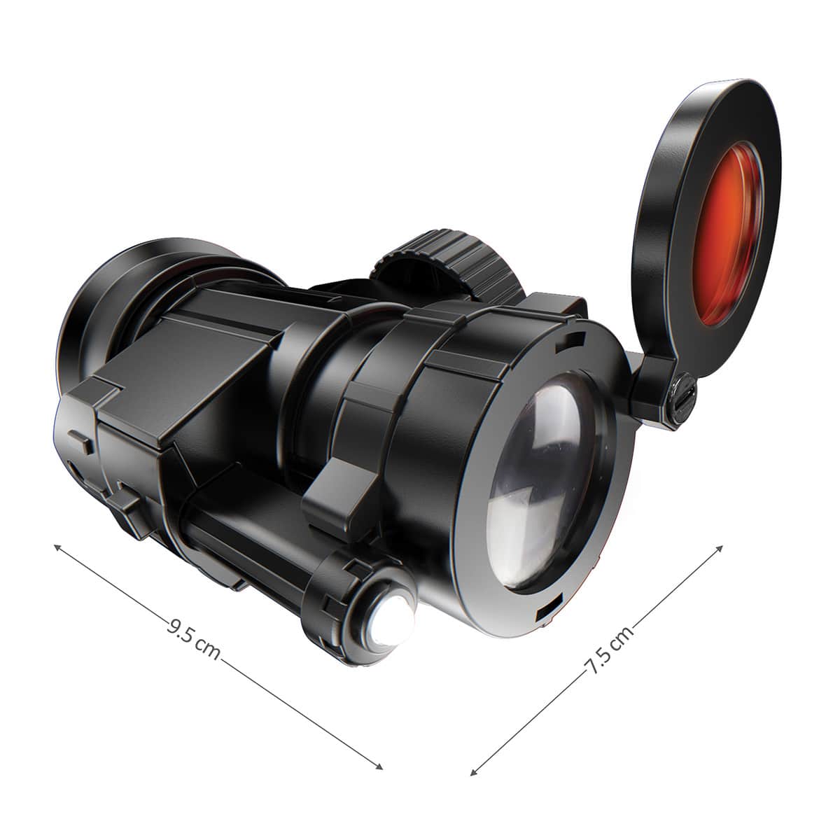 בנו משקפת מונוקולרית מוארת משלכם עם אלומת אור LED ועדשה עם פילטר צבע שמחקה ציוד טכנולוגי לראיית לילה למשחק ריגול סוחף.