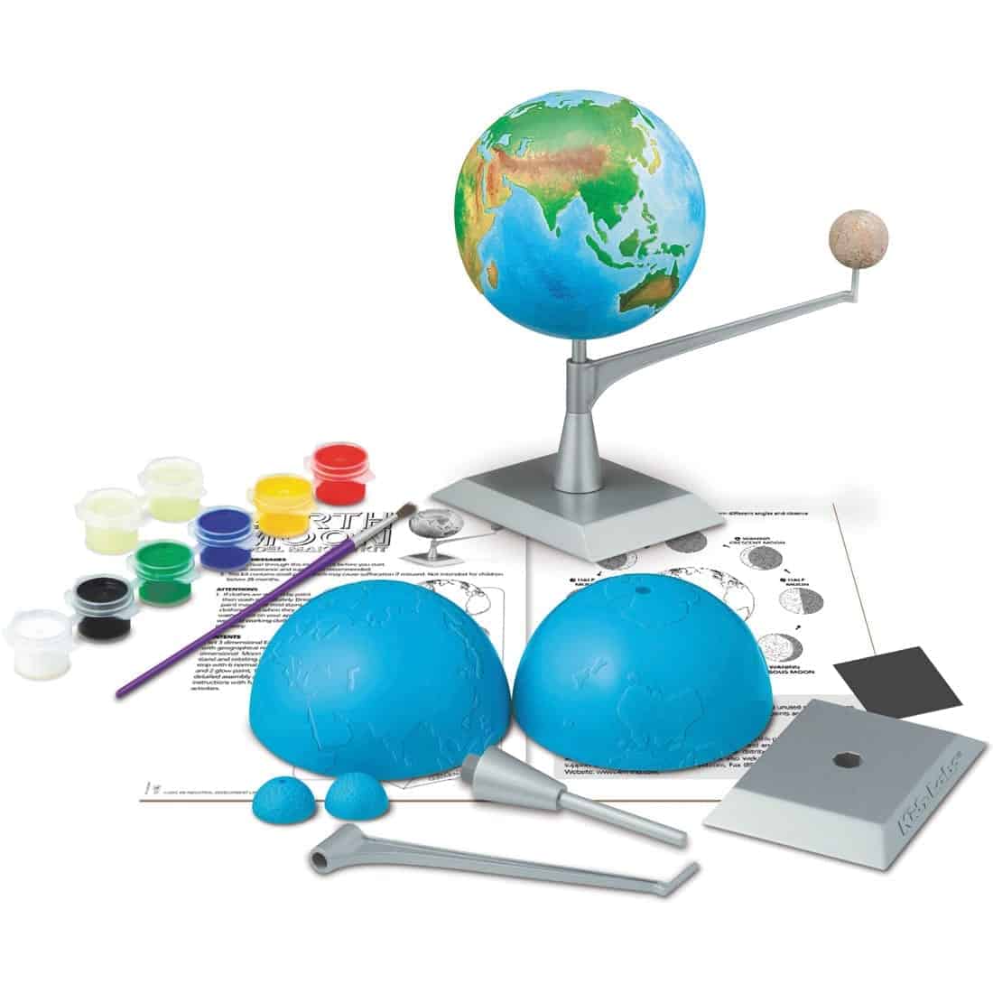 הערכה מכילה מודל תלת ממדי של כדור הארץ עם תבליט גאוגרפי, מודל ירח תלת מימדי, מעמד וזרועות מסתובבות, רצועת צבע, צבע זוהר, מברשת צביעה, נייר זכוכית והוראות מפורטות (יש צורך בפנס אשר אינו נכלל בערכה זו על מנת להראות את ליקויי החמה והלבנה).