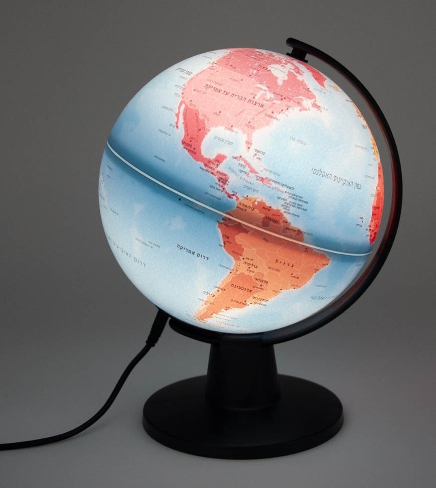 גלובוס יום ולילה מאיר בעברית 25 ס"מ