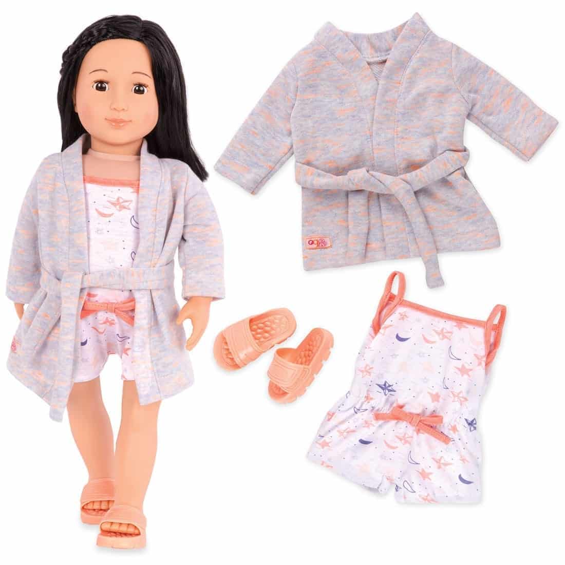 סט פיג’מה חלוק וסנדלים לבובות Our Generation מסדרת Regular Outfits