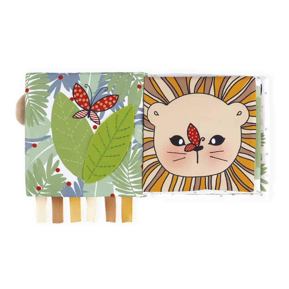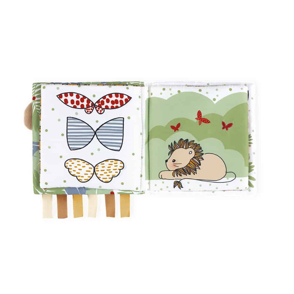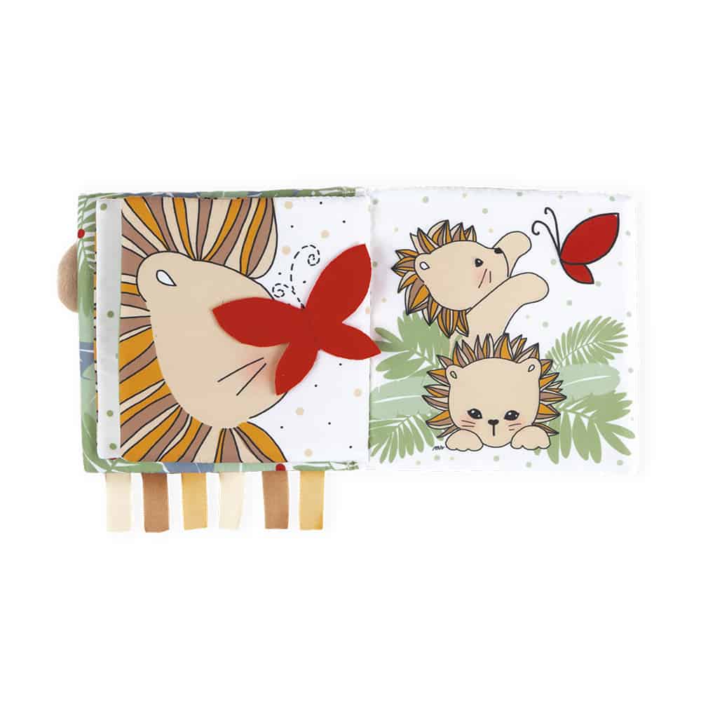 ספר פעילות מבד – האריה הסקרן. גלו את סיפורו של גור אריות חמוד להפליא המגלה את הטבע ואת הפרפרים.