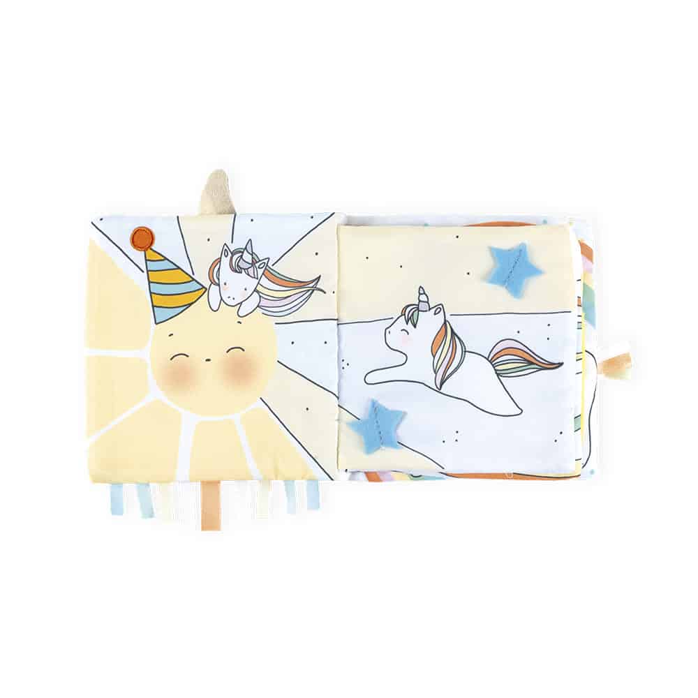 ספר פעילות מבד- חד הקרן השמח. צאו למסע מרגש עם הציורים היפים בספרון אמבטיה זה וספרו את סיפור המסע של חד קרן יפיפה בחיפוש אחר השמש איתה הוא רוצה לשחק.
