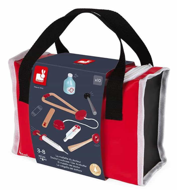 מזוודת הרופא היפהפייה הזו לילדים מגיל 3 עד 8, תאפשר לקטנטנים להפוך לרופאים שהם חולמים להיות. בזכות אביזרי העץ האמיתיים, ילדים יוכלו לטפל במשך שעות בכל הכאבים והכאבים הקטנים של מי שהם אוהבים. המשחק מאפשר להם לצבור ביטחון עצמי על ידי חיקוי המבוגרים.