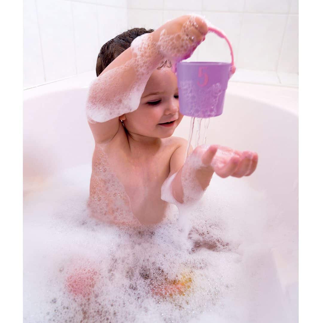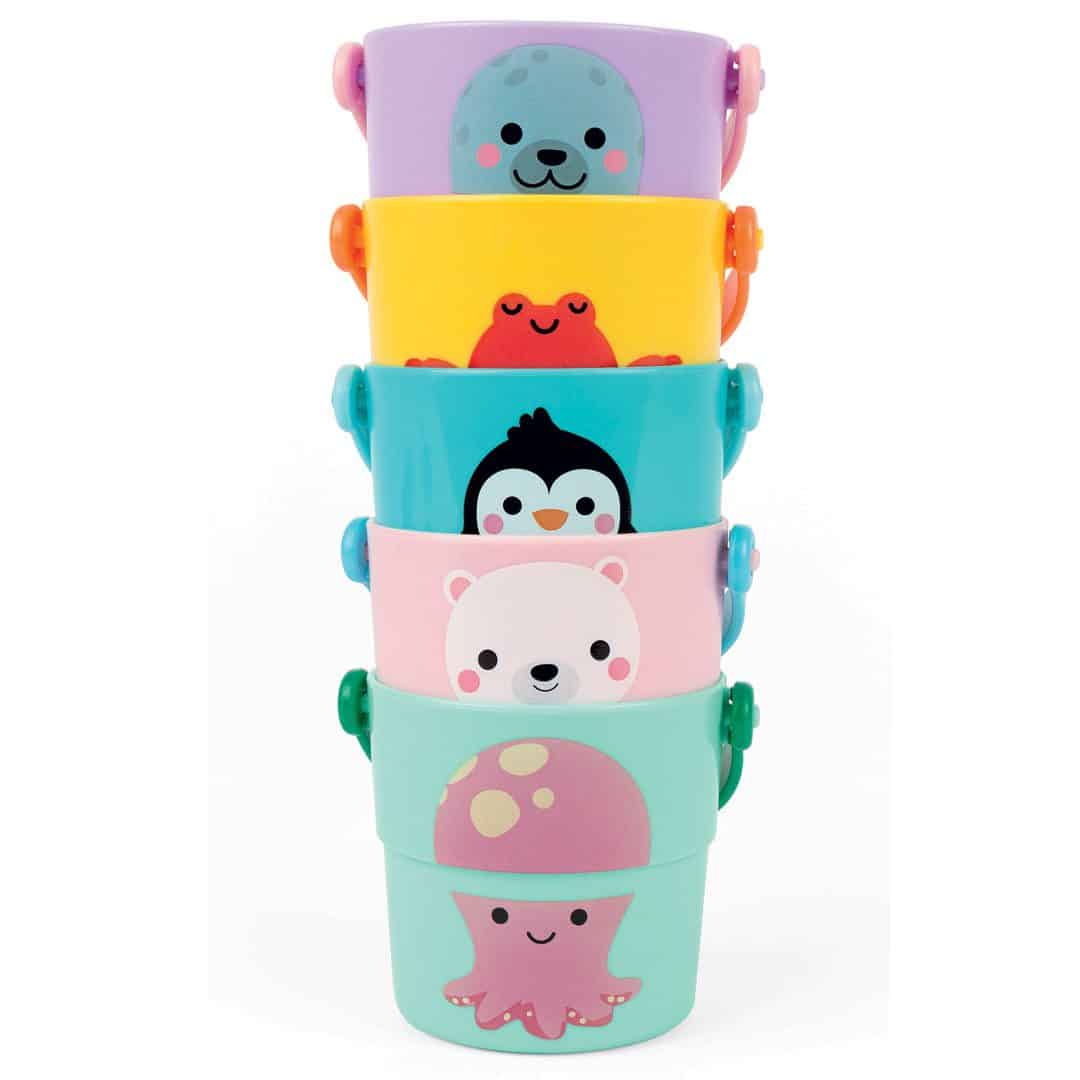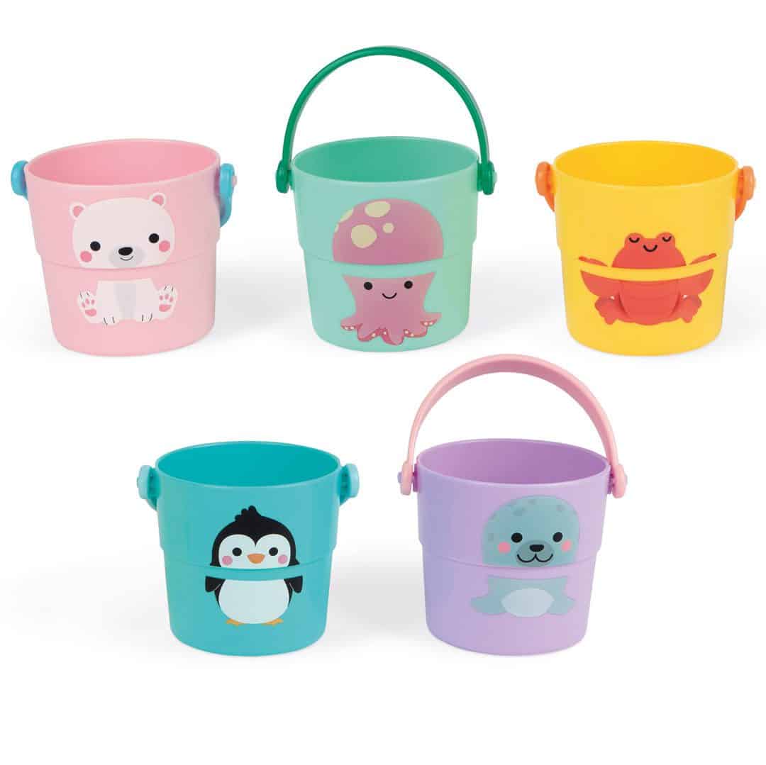 צעצועי אמבט – מערום דליים צבעוניים מבית Janod