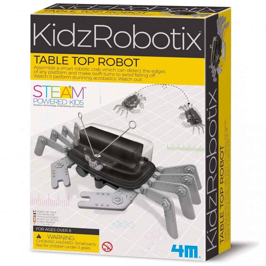 ערכת רובוט שולחן מכילה: 8 רגליים, 1 מכסה שקוף, 1 תושבת עם מנוע מותקן, בורג דיסקית, 2 ברגים, 1 נרתיק סוללה, 2 צבתות, 2 צירים, 2 הילוכים, 1 אנטנת חוט מתכת, 2 מחברים ודף הוראות.
