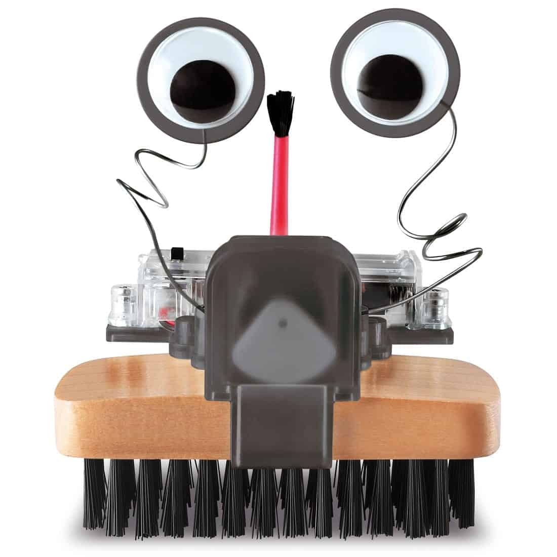 ערכת רובוט מברשת מכילה: מכסה מנוע, פלטת בסיס, מחזיק למברשת קטנה, משען למברשת גדולה, מארז סוללה עם מכסה, מברשת גדולה, מברשת קטנה, זוג עיניים זזות ואחורי עיניים, מנוע, בריחים ואומים, ברגים, 2 חוטי עיניים, 2 מכסי מסוף והוראות מפורטות.