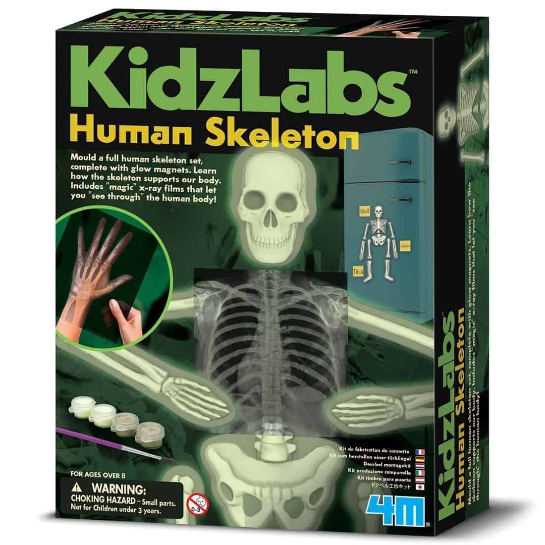 בנו ערכת שלד אדם מלאה הבנויה ממגנטים זוהרים. למדו כיצד השלד תומך בגופינו. הערכה כוללת סרטי צילום רנטגן “קסומים” המאפשרים לכם לראות “מבעד” לגוף האדם.