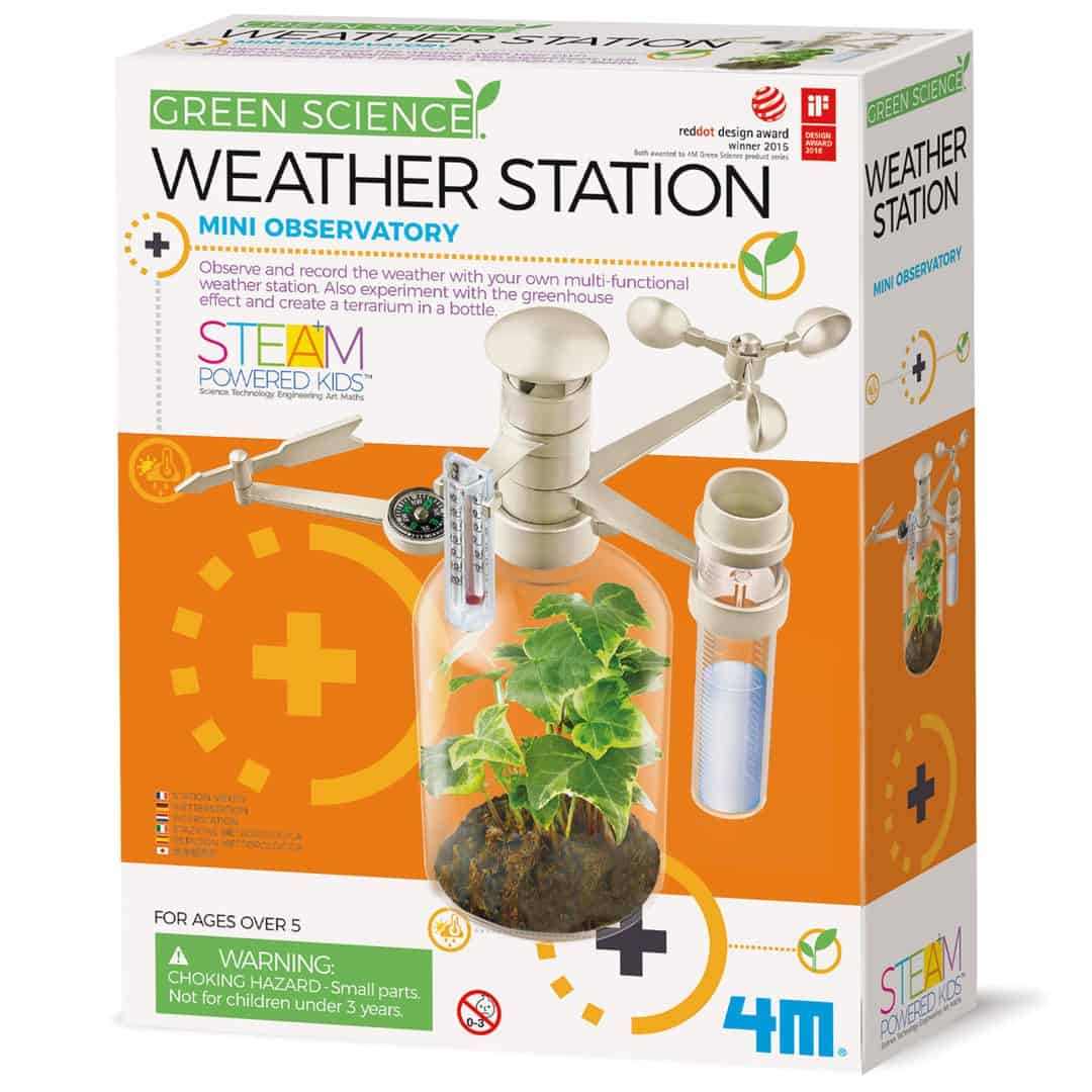 בעזרת ערכת תחנה מטאורולוגית נבנה תחנת חיזוי מזג האוויר החכמה בעלת פונקציות רבות. ביכולתכם לעקוב אחר שינויי מזג האוויר, ללמוד עובדות אודות מזג האוויר ולערוך ניסויים באפקט החממה. לאחר שסיימתם לחקור, ביכולתכם למחזר בקבוק ולהכין מיני חממה משלכם. תחנה מטאורולוגית היא ערכת חובה לכל חוקר מזג אוויר מתחיל.